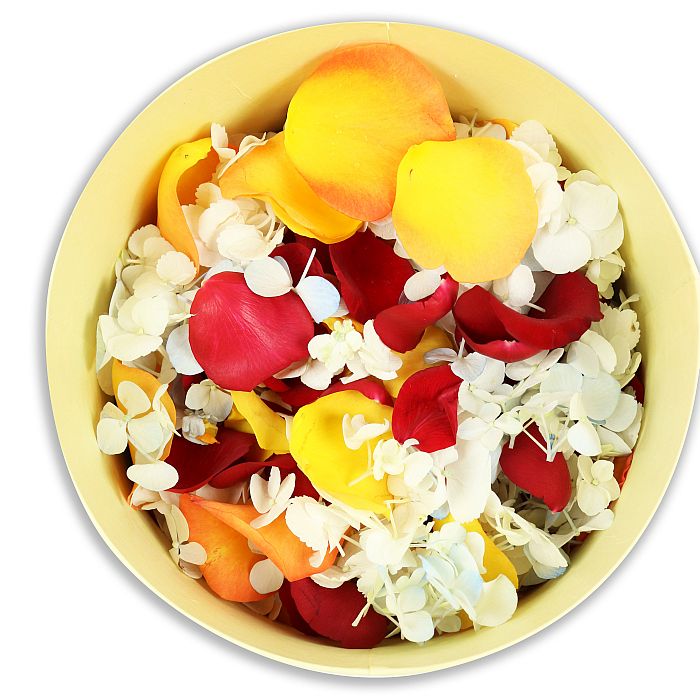 Our FLOWER PETALS arrangement is a bright, elegant mix of delicately picked petals, perfect for weddings, confetti tosses, table decor, and any special ceremony. Handcrafted in Guildford, this premium blend includes soft hydrangea petals, romantic rose petals, and cheerful chrysanthemum petals for a rich mix of colours and textures.